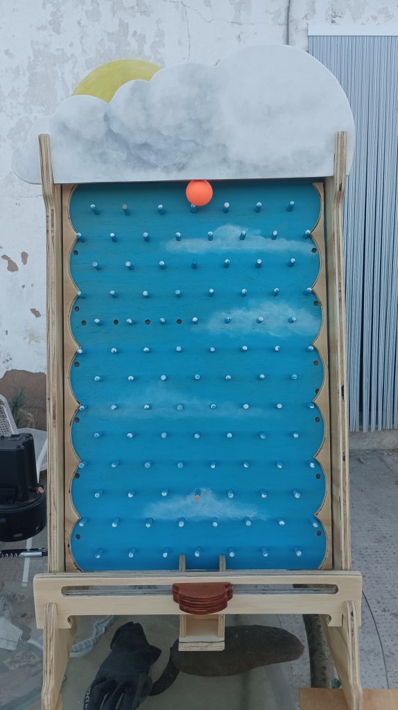 Canicascada: Dimensión: 80×60. Edad recomendada: De cinco años en adelante. Reglas del juego: Vierte las canicas en el engranaje superior e intenta recogerlas todas. Un juego de habilidad y rapidez. Por un lado juegan los padres con canicas, por el otros los peques con pelotas de ping-pong lo que lo convierte en un dos por uno con dos niveles de dificultad distinto!